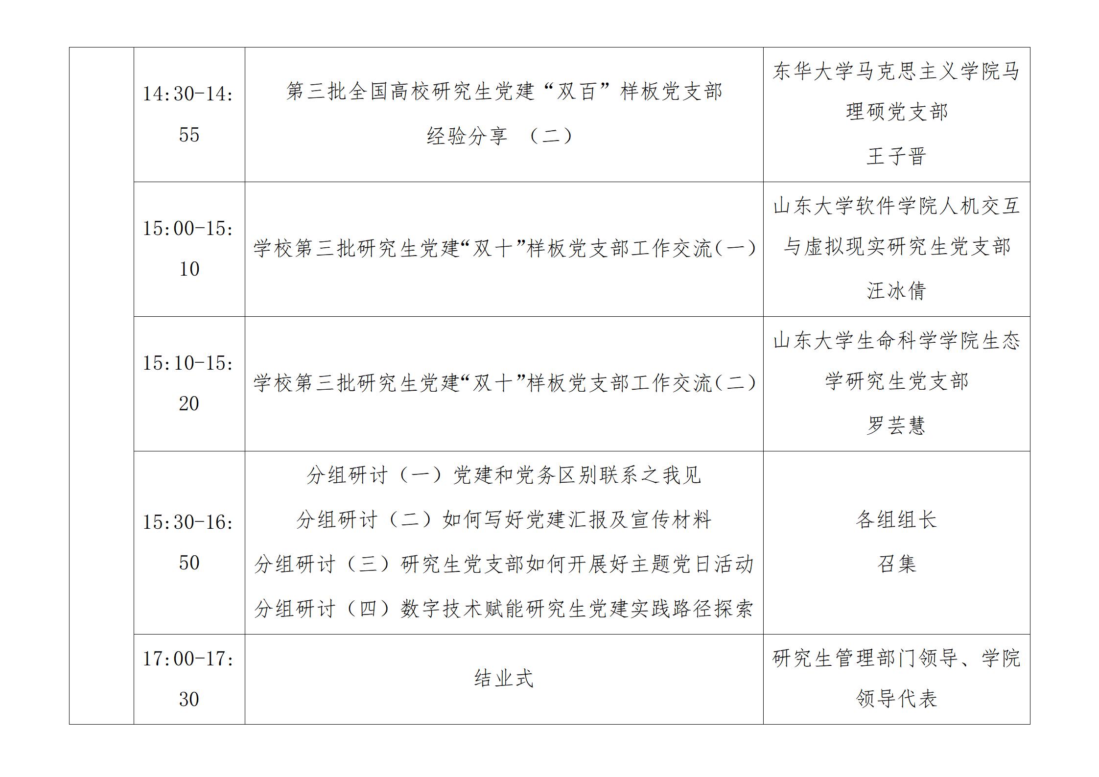 1.各单位党委须高度重视,统筹确定参训人员名单、平均分配分组讨论人员,认真组织本党委研究生党支部书记撰写工作心得,做好提交的文字类材料意识形态审查。
