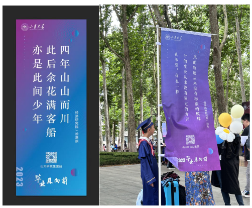 “毕业原创校园文化作品征集”活动面向全体毕业研究生征集含三行情诗46首,并制作成百余面毕业道旗,为毕业研究生提供传递毕业季独白、传递家国情怀的畅通渠道。