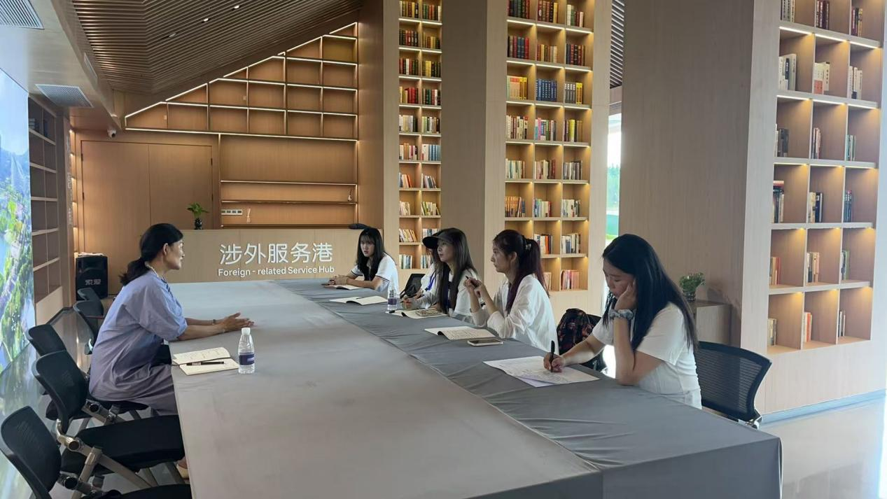 在孙村街道云湖社区,调研团重点调研了便民服务中心的“一厅四室”和廉政文化展馆。在党支部书记贺芸芝的耐心介绍下,团队了解到本社区优势为空间资源充分,因此采用空间资源置换吸纳“社区基金”的方式吸引企业、社会组织共建,形成较为独特、成熟的发展模式。