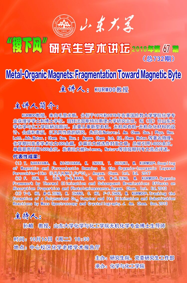 “稷下风”第732期: Metal-Organic Magnets: Fragmentation Toward Magnetic Byte