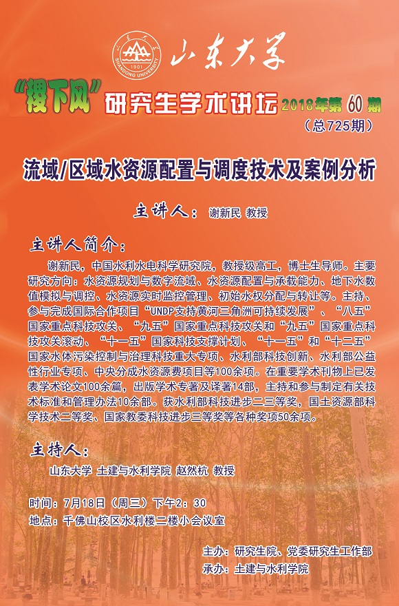 “稷下风”第725期:流域/区域水资源配置与调度技术及案例分析