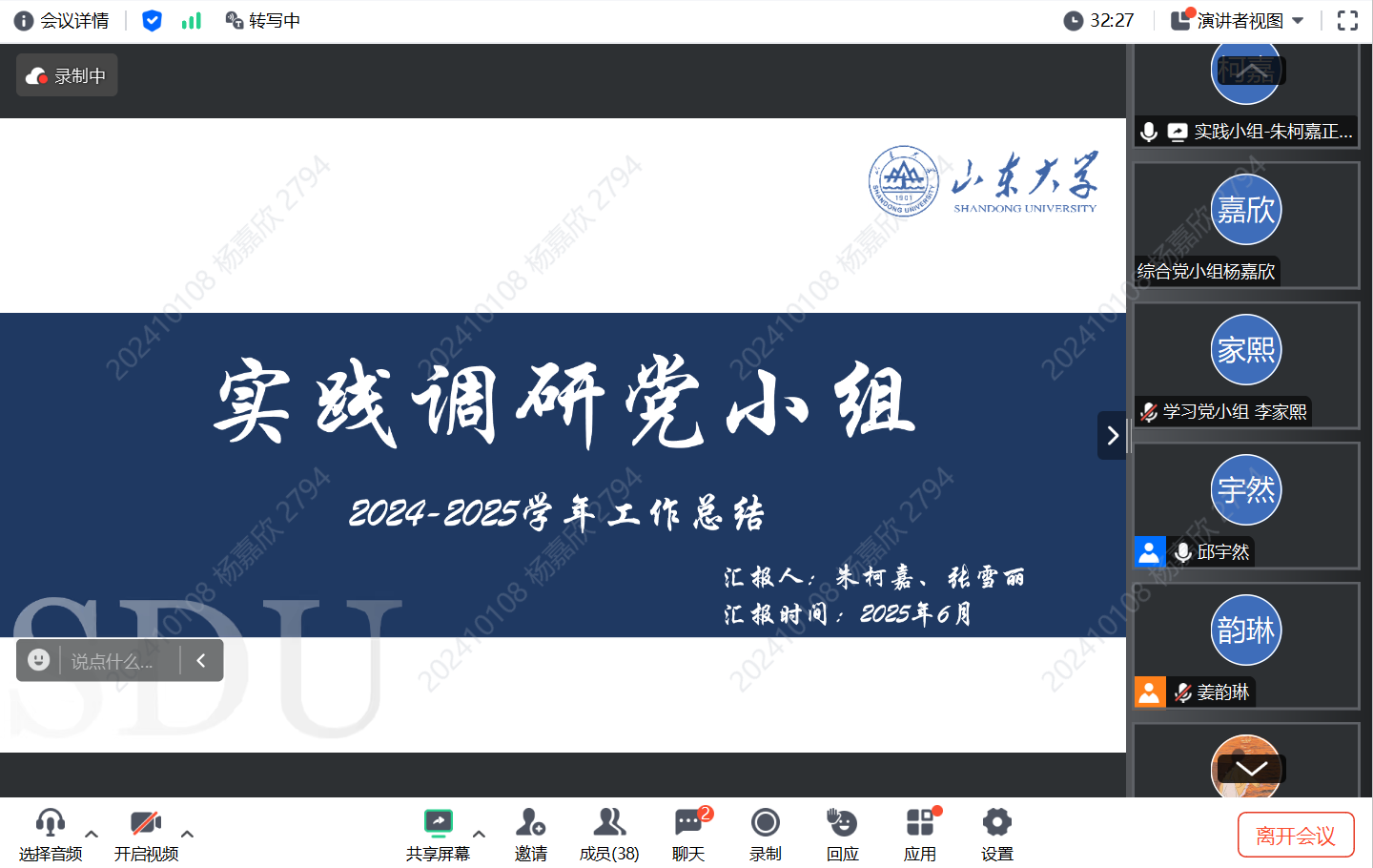 分管实践调研党小组的副书记朱柯嘉围绕重点工作、经验总结与未来展望展开分享。系统介绍了研究生思政实践活动、主题案例大赛等工作成果;深入剖析活动开展中通知传达、会场安排、赛后总结等环节存在的问题,并提出针对性解决方案,强调策划执行细节的重要性;同时回顾组内工作挑战,表达对未来发展的美好期许。