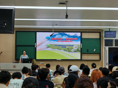 谈及导学关系,刘倩倩用皮格马利翁效应强调期望与信任的力量,鼓励同学主动与导师沟通,构建双向赋能的良性互动。在“恋爱与成长”环节,她指出爱情是个人情感选择,构建健康的情感关系是个体人格完善和成熟的重要过程。讲座尾声,师生齐声诵读萨提亚经典诗篇《我和你的目标》,刘倩倩寄语新生“相信爱、勇敢爱,做真正的自我”,为讲座画上温暖句号。