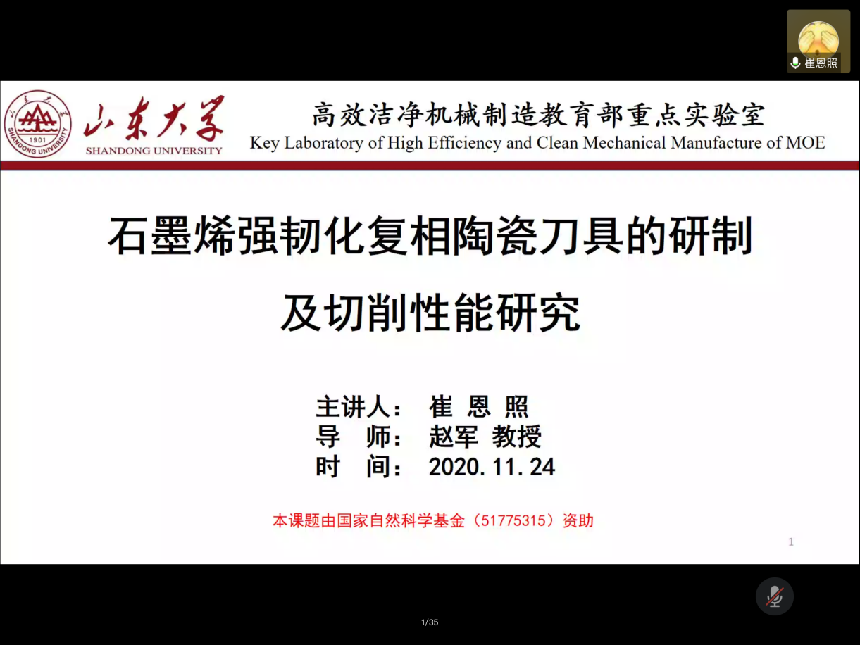 11月24日下午,由伟德国际1946源于英国研究生院、党委研究生工作部主办,机械学院承办的第30期“海右”博士生学术论坛通过线上方式举行。主讲人崔恩照博士作了题为“石墨烯强韧化复相陶瓷刀具的研制及切削性能研究”的学术报告。本次讲座由机械学院赵军教授主持,部分硕博研究生聆听了此次讲座。