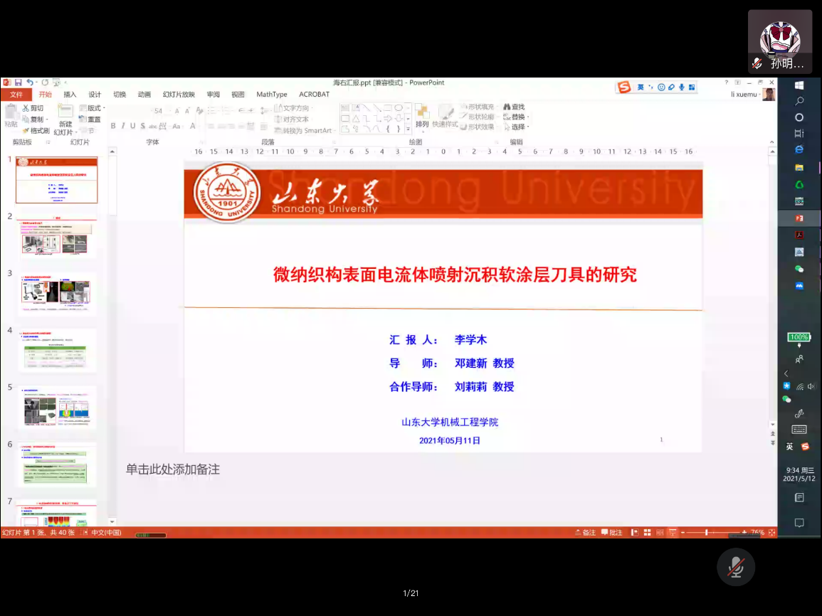 2021年5月12日上午,由伟德国际1946源于英国研究生院、党委研究生工作部主办,机械学院承办的第10期“海右”博士生学术论坛通过线上方式举行。主讲人李学木作了题为“微纳织构表面电流体喷射沉积软涂层刀具的研究”的学术报告。本次讲座由机械学院邓建新教授主持,部分硕博研究生聆听了此次讲座。