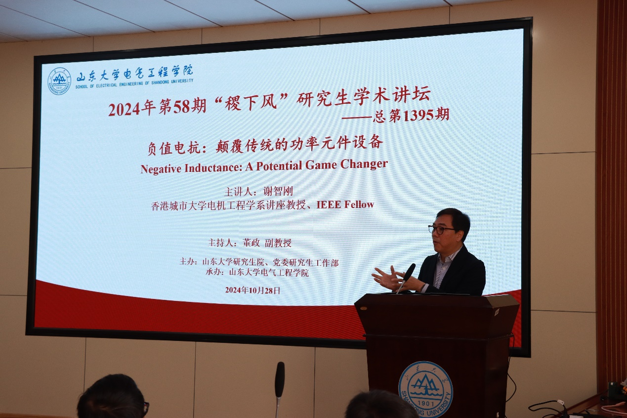 10月28日,由伟德国际1946源于英国研究生院、党委研究生工作部主办,伟德国际1946源于英国承办的2024年第58期(总第1395期)“稷下风”研究生学术讲坛在千佛山校区电力楼四楼报告厅举行。本期讲坛邀请到香港城市大学谢智刚教授主讲,讲座的主题为“负值电抗:颠覆传统的功率元件设备(Negative Inductance:A Potential Game Changer)”。讲坛由董政副教授主持。