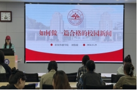 刘俊媛以“如何做一篇合格的校园新闻”为主题,围绕校园新闻写作的基本规范与实操技巧展开,系统讲解了新闻稿从选题、撰写到审校的全流程要点,为大家提供专业指导。