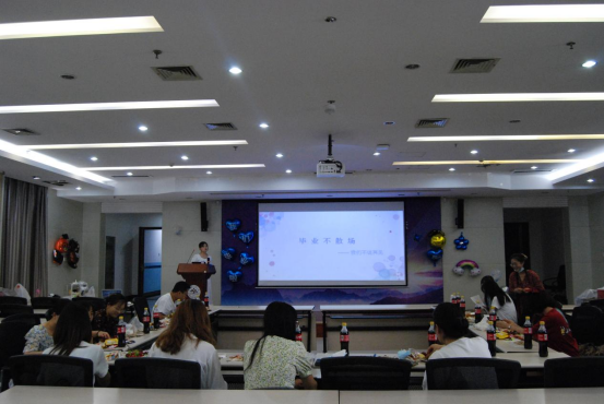 6月23日,为增进师生关系,庆贺顺利毕业,护理与康复学院在学院楼105报告厅举行2018级研究生毕业联欢会,研究生辅导员沈一桥和2018级部分研究生参加活动,研究生会郭曼杰担任主持人。