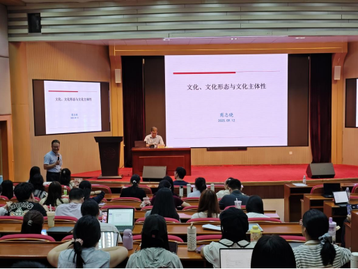 商志晓教授围绕“文化、文化形态与文化主体性”这一主题,为马克思主义学院2025级研究生新生带来一堂思想深邃、视野宏大的学术启航课。他首先从文化及其重要地位入手,详细解析了文化的内涵与时代价值,并对当前“文化热”现象作了深入剖析;进而辨析文化与文明的联系和区别,界定文明判定标准并强调社会礼仪的关键作用;通过历史与现实相结合,归纳中国文化形态变迁,阐发中华优秀传统文化的当代意义与现代文化建设方向;重点解读“两个结合”,特别是“第二个结合”的哲学基础、实践路径及其与“第一个结合”的辩证关系;最后围绕文化主体性建构,明晰相关概念特征并提出中华文化主体性建设的实现路径。讲授过程中,商教授还结合自身丰厚的理论积累与实践经验,提出了文化研究方向的宝贵建议,为马克思主义学院2025级研究生新生同学的后续学习与研究带来深刻启发。