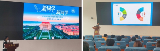青岛校区图书馆教师廖静则向新生介绍了图书馆的设施、资源和服务等内容,并就图书馆电子资源的使用进行了具体说明,鼓励同学们充分利用图书馆资源,顺利实现科研梦想。
