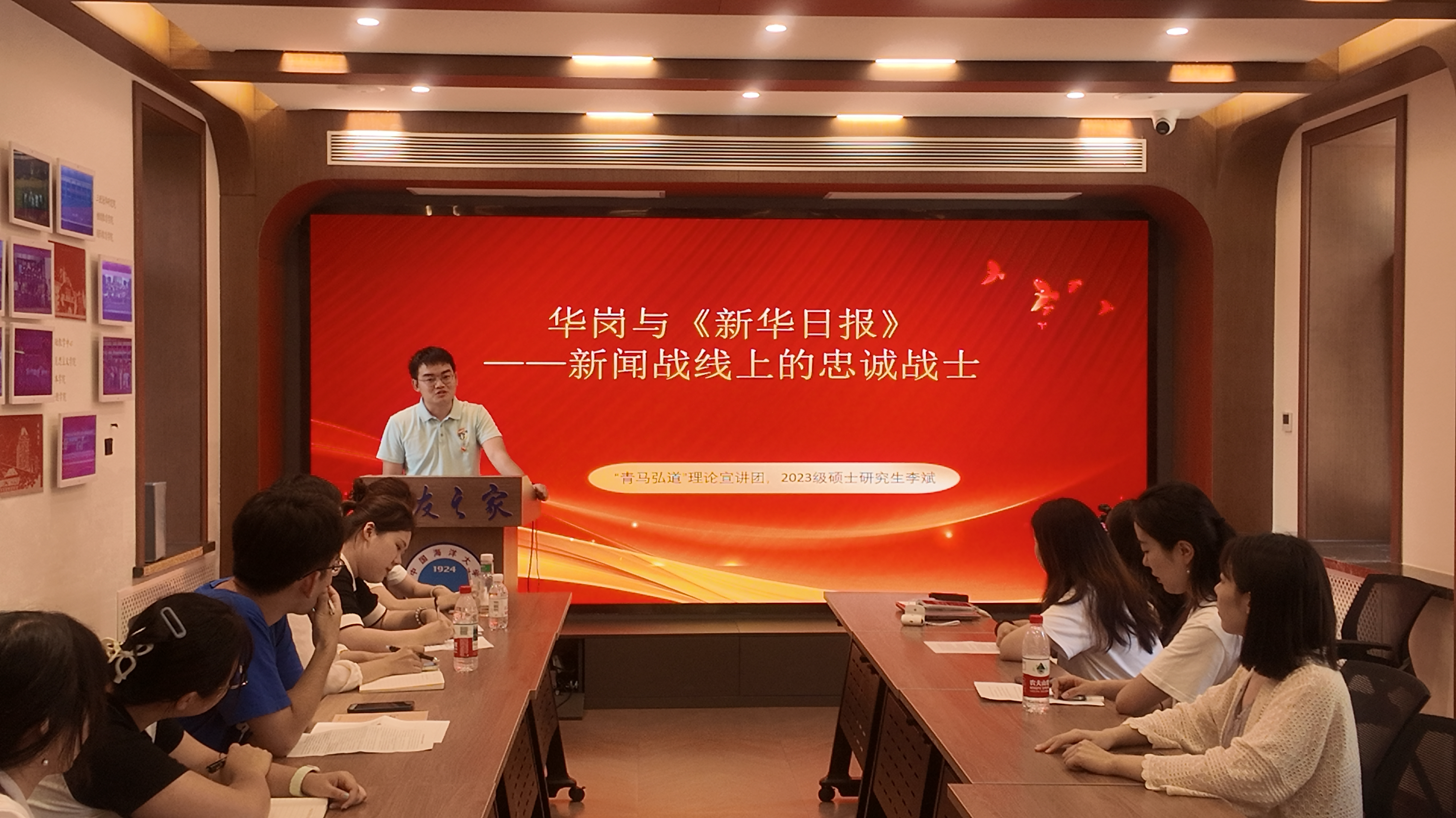 主题宣讲环节围绕华岗讲政治大课以及华岗在抗战中作出的重要贡献展开。中国海洋大学青年马克思主义者宣讲团成员尚明治带来题为“从华岗讲台到民族脊梁的抗战精神传承”的主题宣讲,通过四张照片,生动诠释了华岗的爱国情怀、民族气节、英雄气概和必胜信念,激励新时代青年以匹夫之责勇担使命,以不屈气节捍卫真理,以英雄之志开拓未知。伟德国际1946源于英国马克思主义学院习近平新时代中国特色社会主义思想青年学习会党支部成员李斌聚焦思想伟力,通过“华岗与《新华日报》—— 新闻战线上的忠诚战士” 这一主题,深入阐述了华岗作为《新华日报》第一任总编辑如何在艰难环境下办刊并使《新华日报》成为党在国统区宣传统一战线政策、传播党的纲领路线和政治主张的有力喉舌,极大地鼓舞了大后方群众的抗战信心的历史。